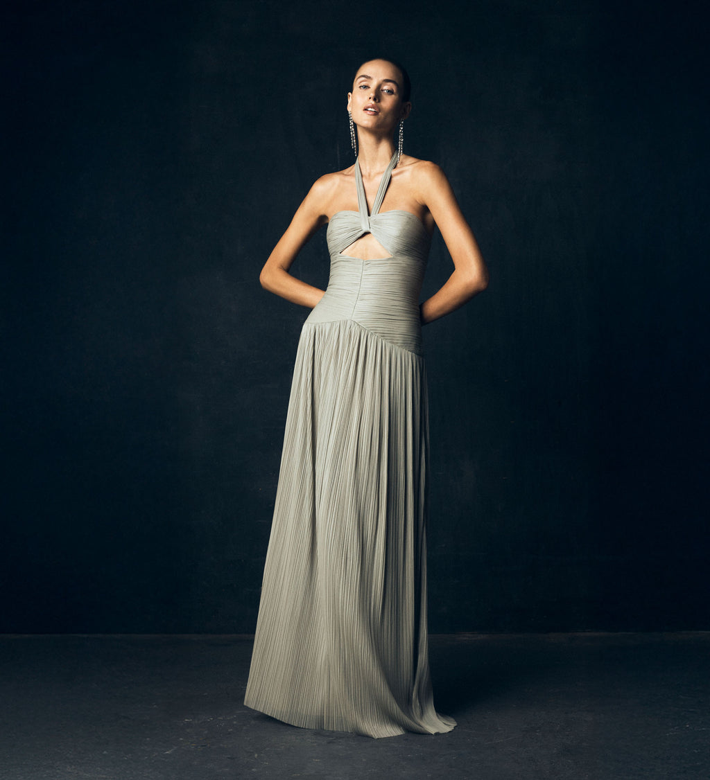 Regular price £125Unit price / per20% OFF AT CARTStacie Pleated Halter Maxi Dress - Cacao