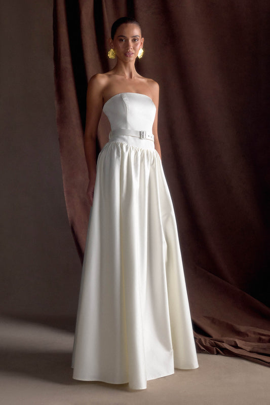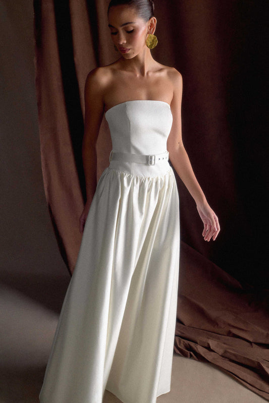 Grace Strapless Draped Waist Maxi Dress - Ivory