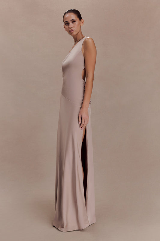 Lyla Asymmetrical Satin Maxi Dress - Bronze Taupe