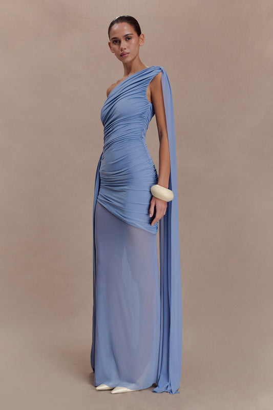 Asher Slinky One Shoulder Maxi Dress - Cornflower Blue