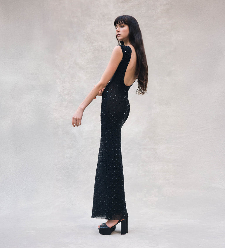 Hot Fix Maxi Dress With Mesh Back - Nude