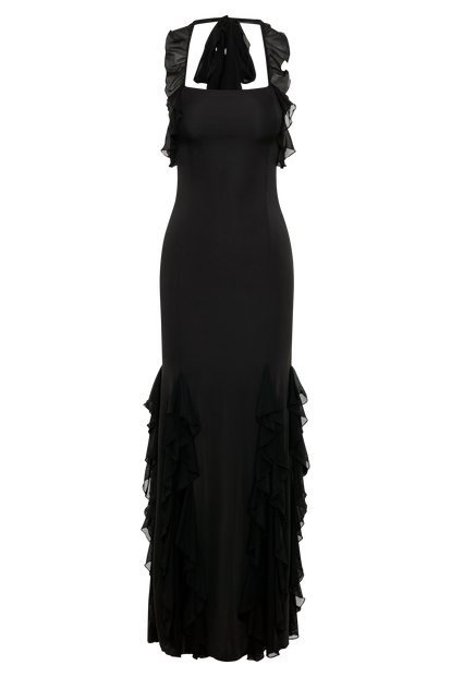 Sascha Lace And Satin Halter Maxi Dress - Black