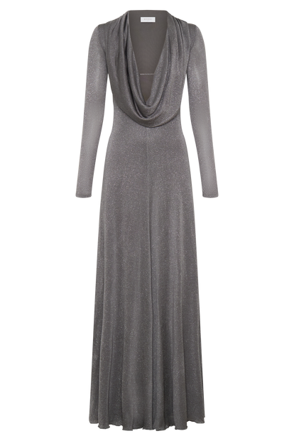 Scarlet Lurex Cowl Maxi Dress - Silver
