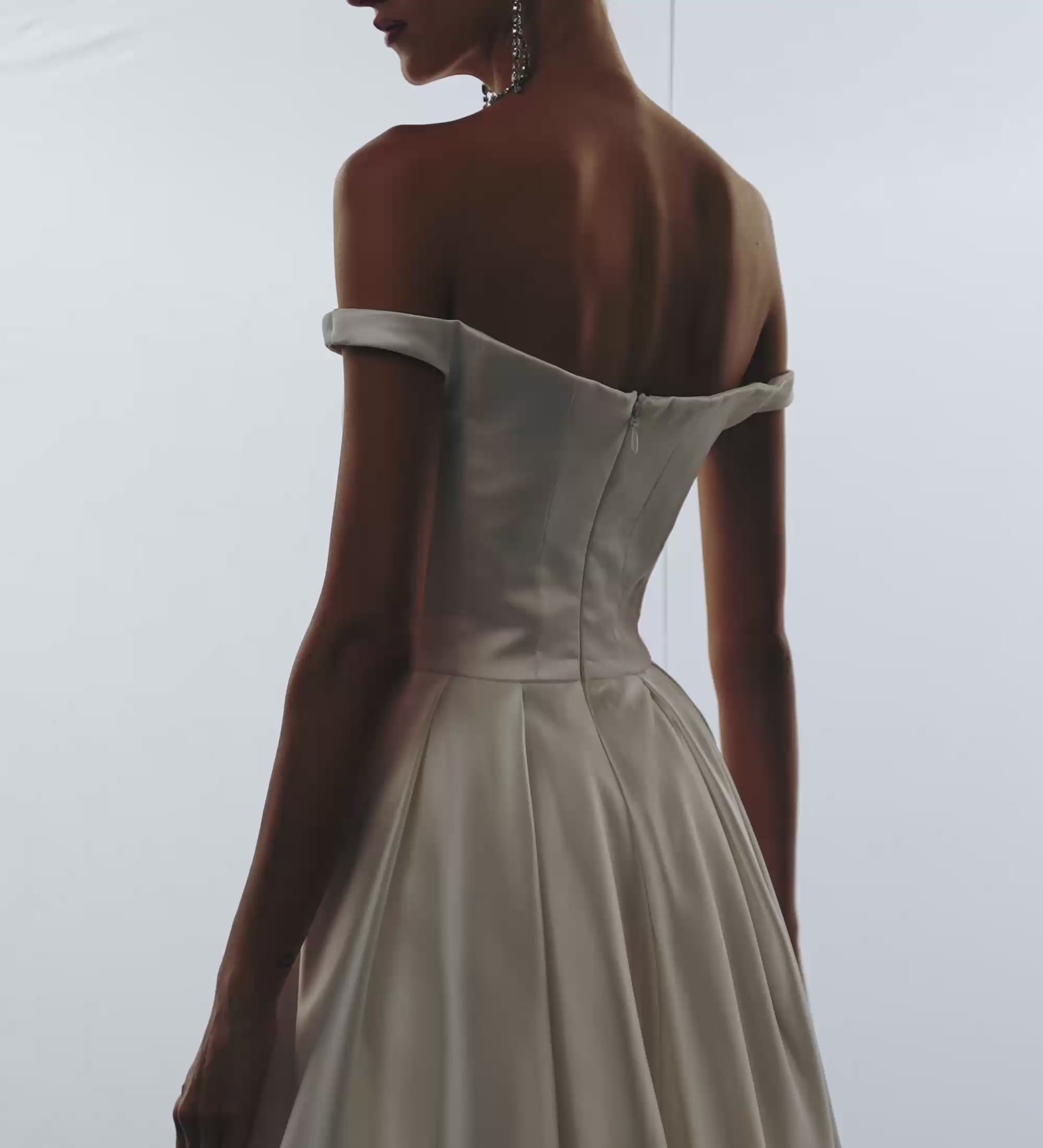 Regular price £715Unit price / perBack In StockLuna Satin Off Shoulder Gown - White