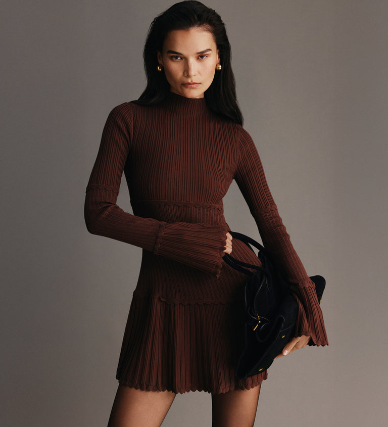 £7527% offBlair Knit Mini Dress With Pleats - Charcoal