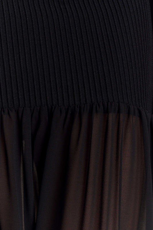 Knit Chiffon Maxi Dress - Black
