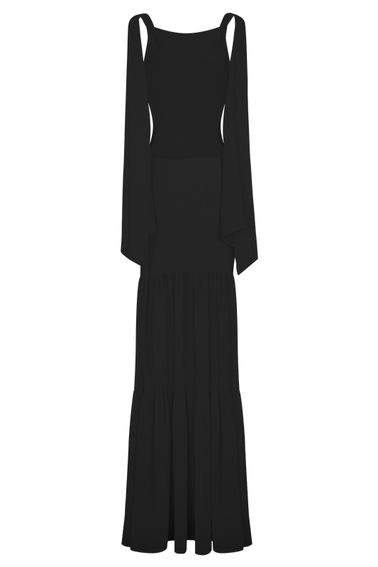 Haille Knit Chiffon Maxi Dress - Black