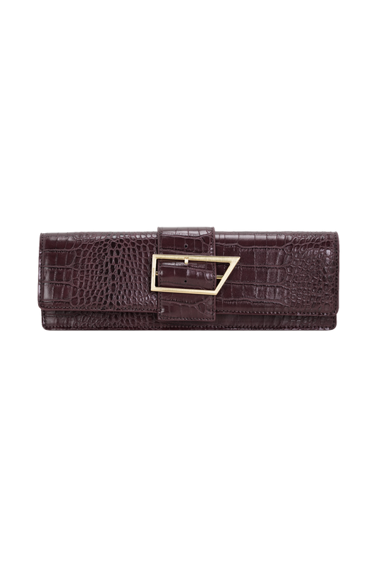 Maria Faux Leather Crocodile Shoulder Bag - Chocolate