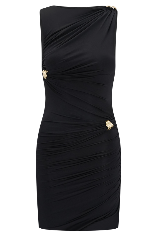 Slinky Sleeveless Mini Dress With Hardware - Black