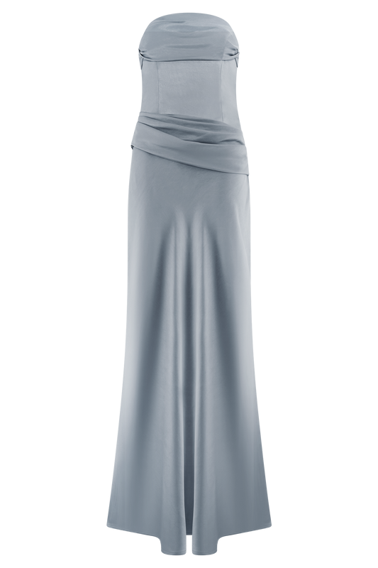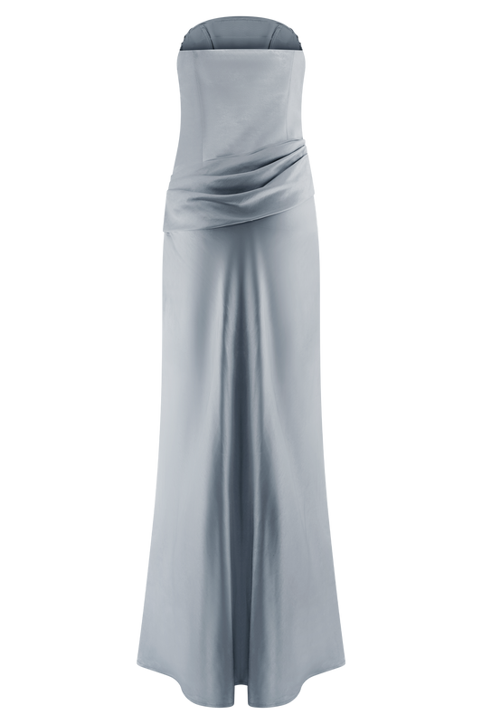 Jasmine Strapless Satin Maxi Dress - Frosted Blue