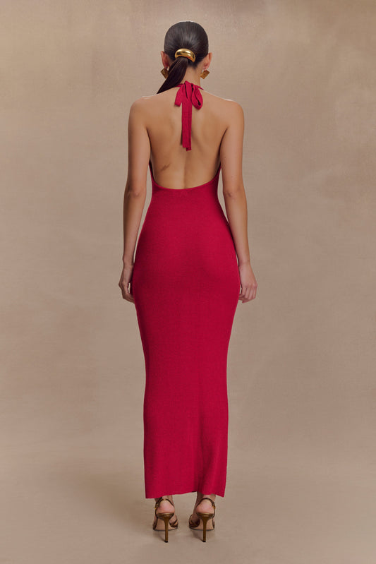 Stacy Knit Halter Maxi Dress - Purple/Red