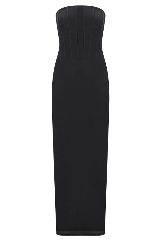 Gemma Strapless Mesh Maxi Dress - Black