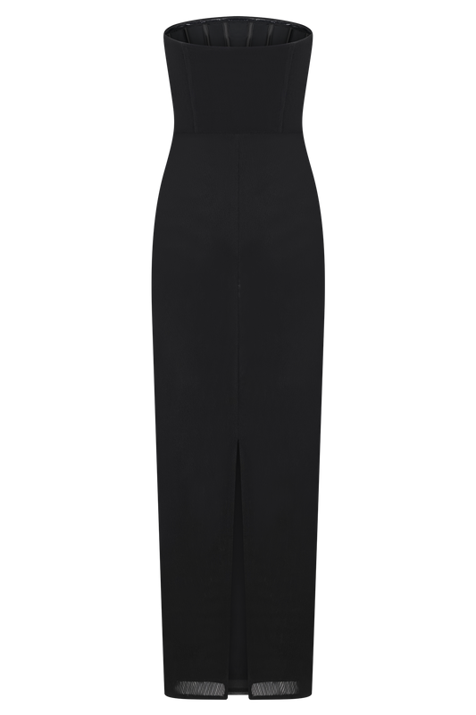 Strapless Mesh Maxi Dress - Black