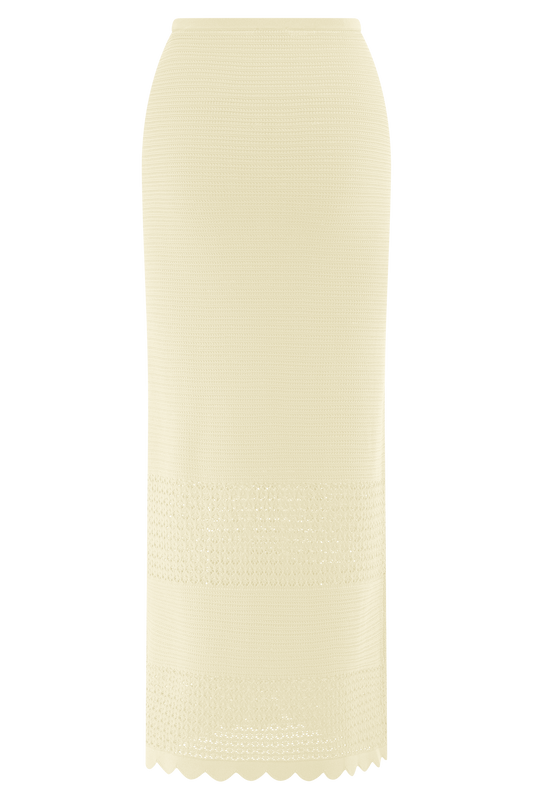 £65-29% Off Sale price £46Unit price / per20% OFF AT CARTMadeline Scallop Knit Midi Skirt - Ivory