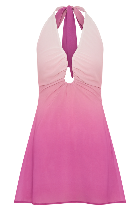 Malakhai Chiffon Halter Mini Dress - Ombre Pink