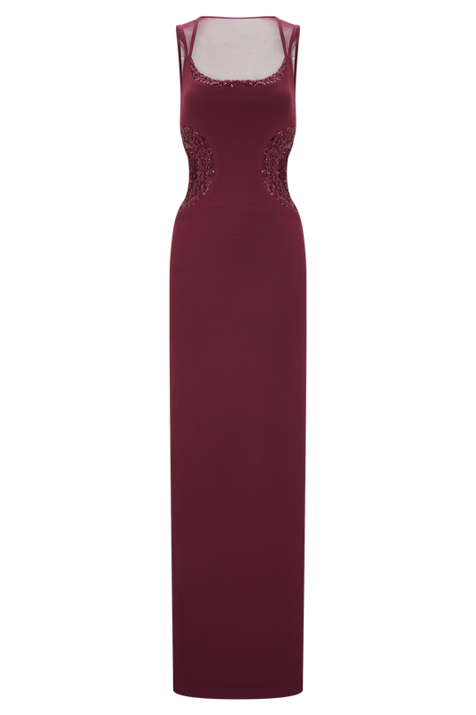 Angelique Beaded Crepe Maxi Dress - Wine