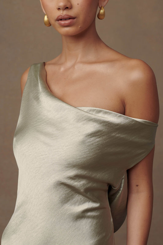 Yvette Slip Maxi Dress With Asymmetrical Hem - Sage