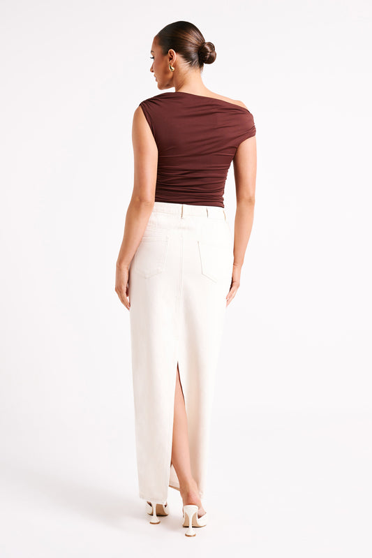 Maelle Off Shoulder Long Sleeve Top - Deep Chocolate