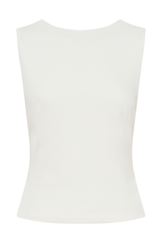 Aisling Ribbed Square Neck Sleeveless Top - Ivory