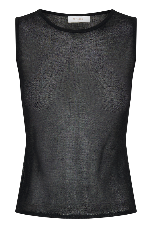Sheer Knit Tank Top - Black