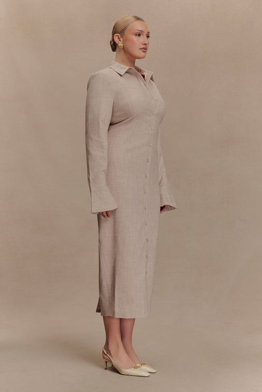 Dorian Fitted Shirt Midi Dress - Wheat Marle