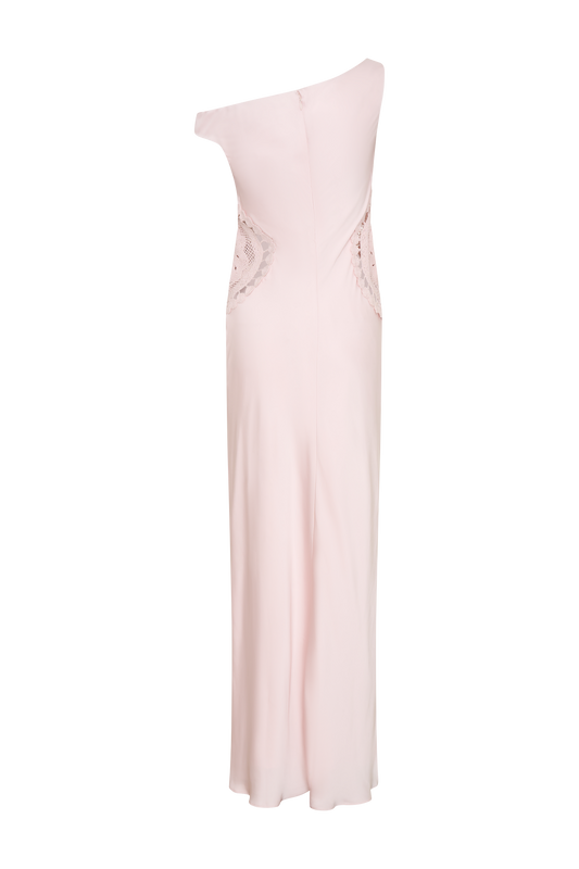£13563% offKristina Satin Maxi Dress With Crochet - Pale Pink