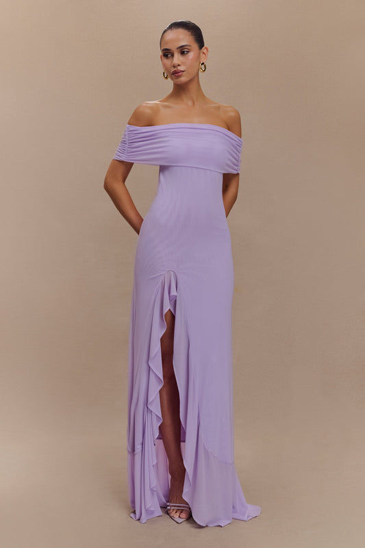 Off Shoulder Mesh Maxi Dress - Lilac