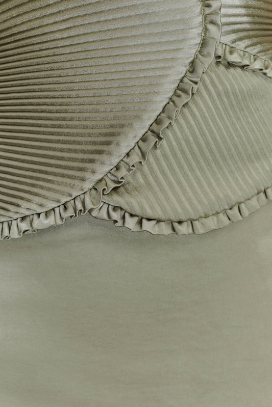 Satin Maxi Dress With Ruched Petals - Sage