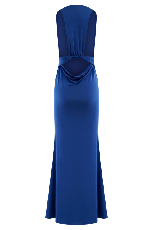 Slinky V Neck Maxi Dress - Cobalt