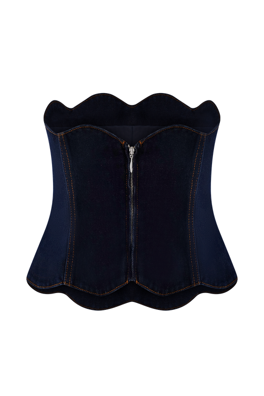 Strapless Scallop Denim Top - Indigo Blue