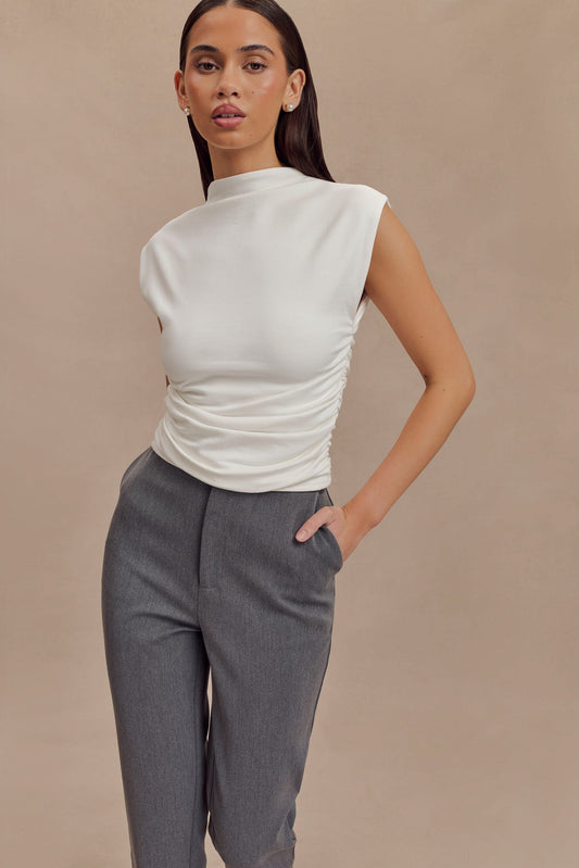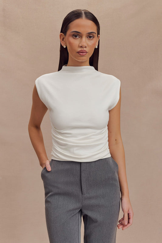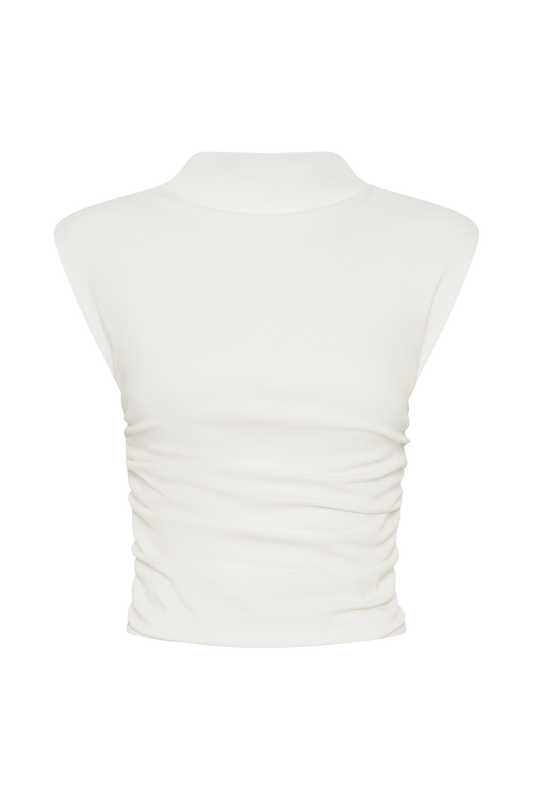 Astrid Asymmetric Sleeveless Suiting Top - White