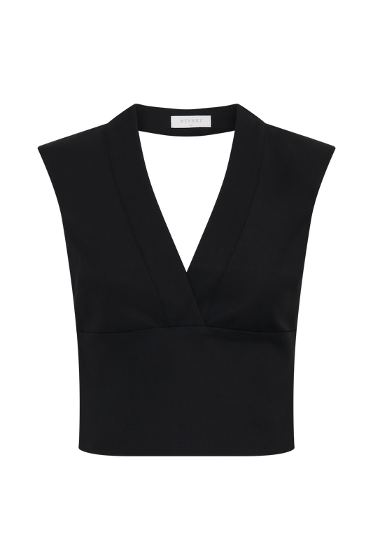 Sleeveless Cross Over Top - Black