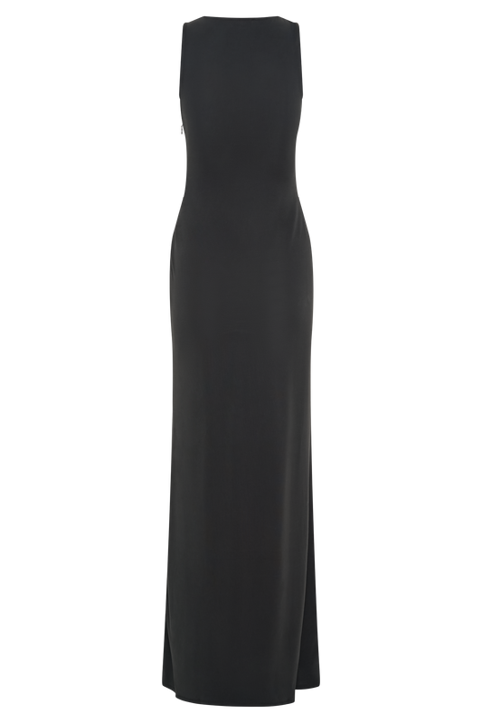Sleeveless Satin Maxi Dress - Black