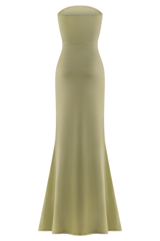 Madison Strapless Slinky Maxi Dress - Sage