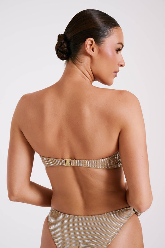 Our bikini tops feature high-quality fabrics, a variety of colours, unique embellishments, and figure-enhancing silhouettes. Shop your dream bikini top and complete the look with matching bottoms from our exclusive collection.