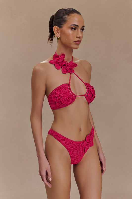 Skye Floral Crochet Tie Up Bikini Bottom - Pink Cherry
