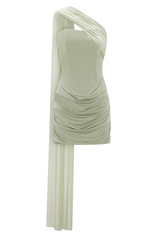 Regular price £85Unit price / per20% OFF AT CARTMattea Slinky And Mesh Mini Dress With Scarf - Sage