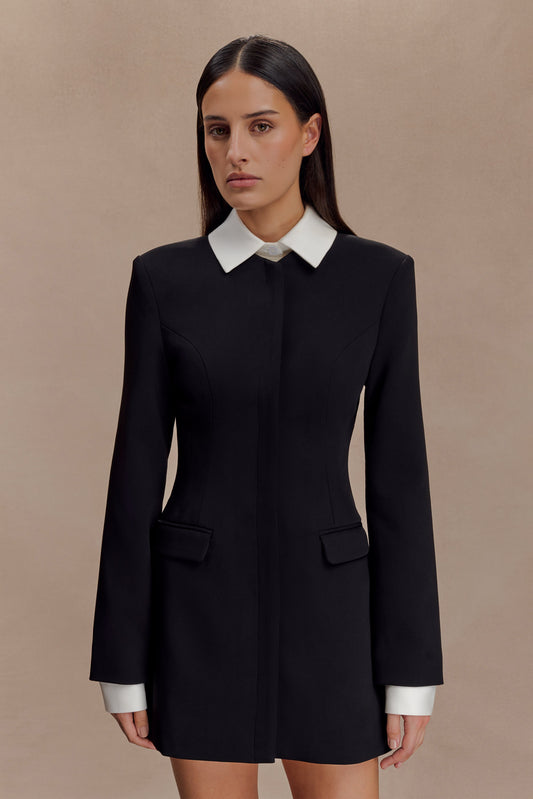 Evanna Sleeveless Contrast Suiting Mini Dress - Black