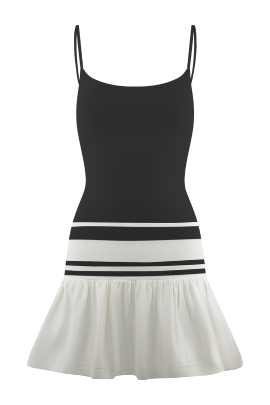 Sleeveless Contrast Mini Dress - Ivory/Black