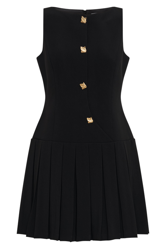 Mackenzie Sleeveless Pleated Mini Dress - Black
