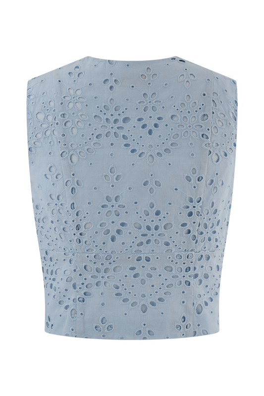 Sleeveless Broderie Top - Pale Cornflower Blue