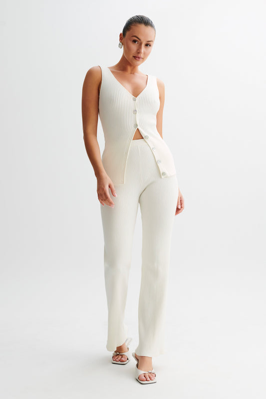 Karlie Knit Maxi Skirt With Ribbed Waist - Ivory