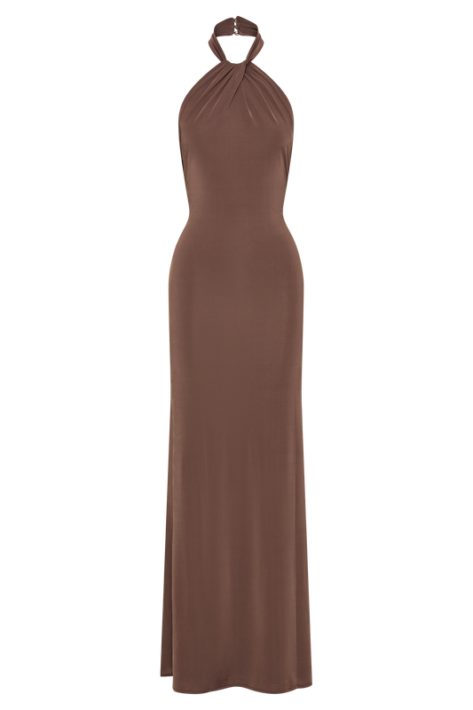 Lilly Sweetheart Satin Maxi Dress - Dark Chocolate