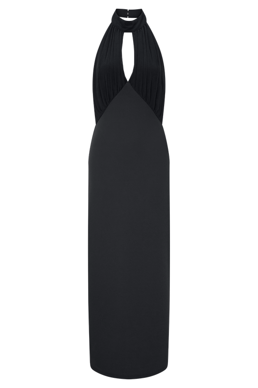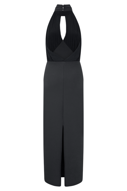 Esther Iridescent Satin Cowl Maxi Dress - Black