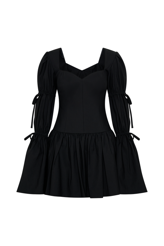 Long Sleeve Cotton Mini Dress - Black