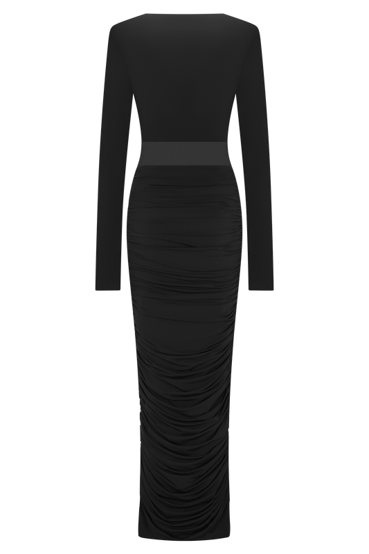 Louanne Slinky Long Sleeve Maxi Dress - Black