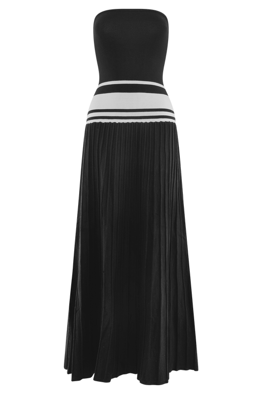 Solaris Strapless Contrast Knit Maxi Dress - Black/White
