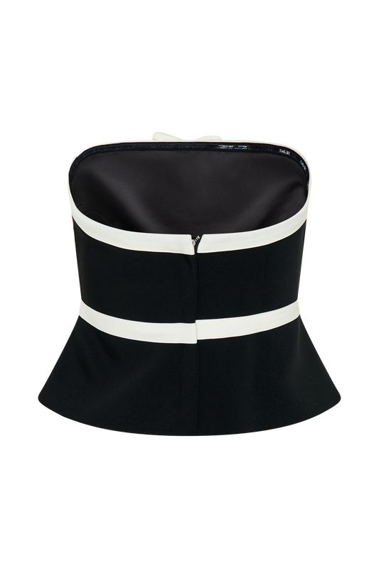 Aisha Strapless Suiting Top With Contrast Bows - Black & White