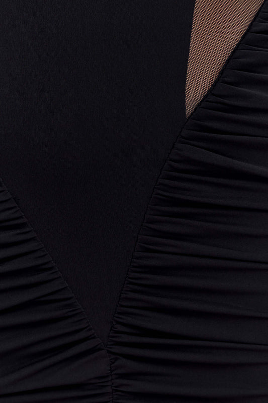 Velvet And Mesh Maxi Dress - Black