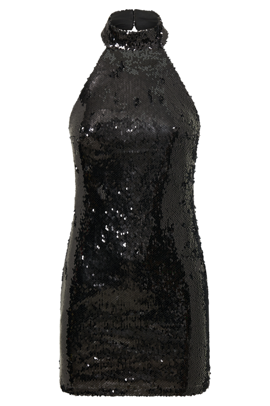 Sequin Halter Mini Dress - Black